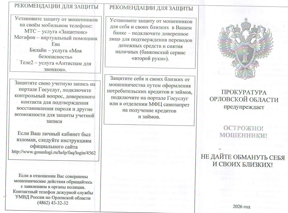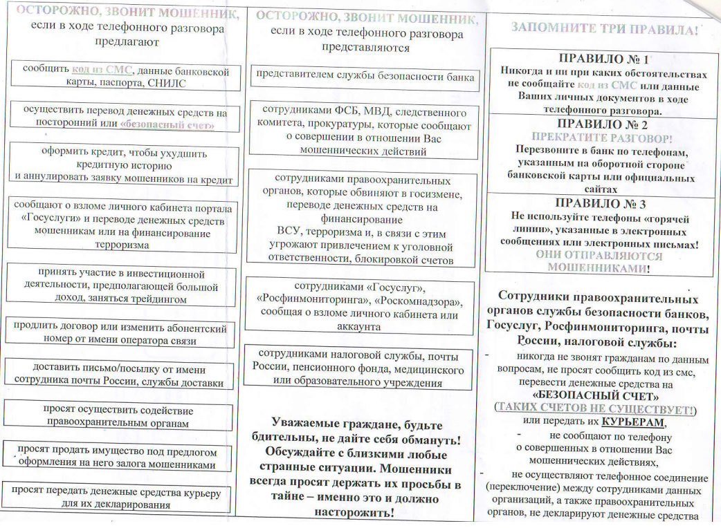 Памятка "Осторожно! Мошенники!"
